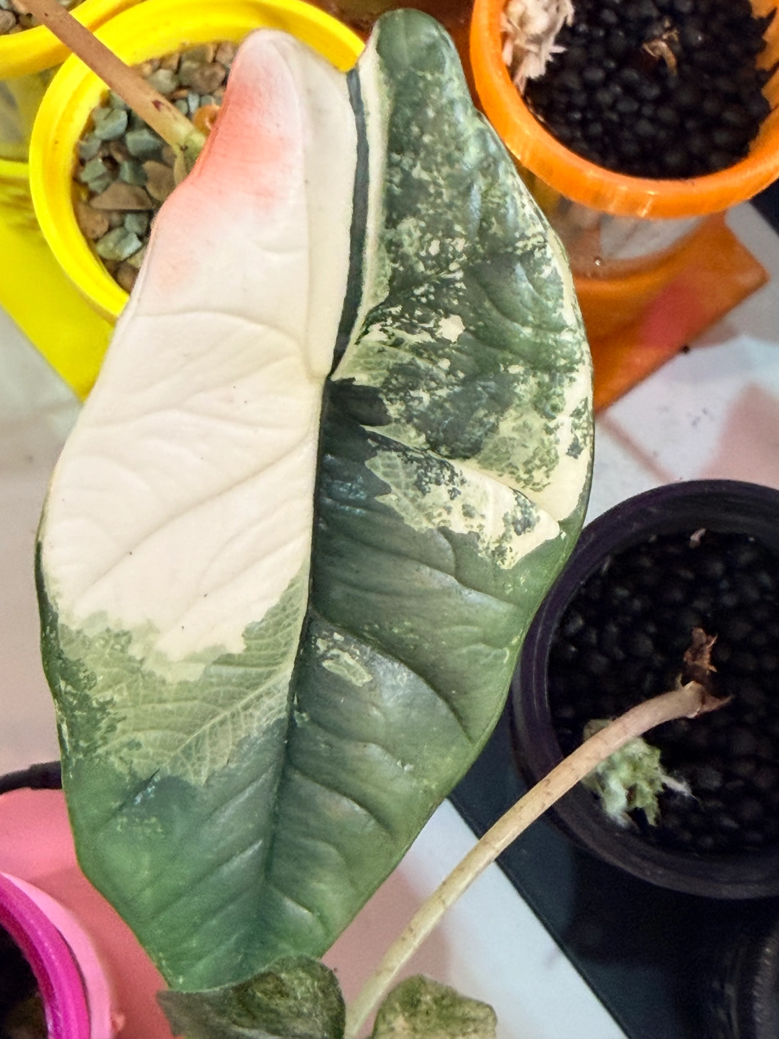 Ideal for serious rare plant collectors seeking the extraordinary, this Bisma Platinum Albo stands among the rarest Alocasias available with extremely limited stock worldwide. The combination of textured leaves and vivid variegation ensures this ultra rare collector's houseplant becomes the crown jewel of any collection, representing both exceptional beauty and the ultimate achievement in rare plant acquisition.