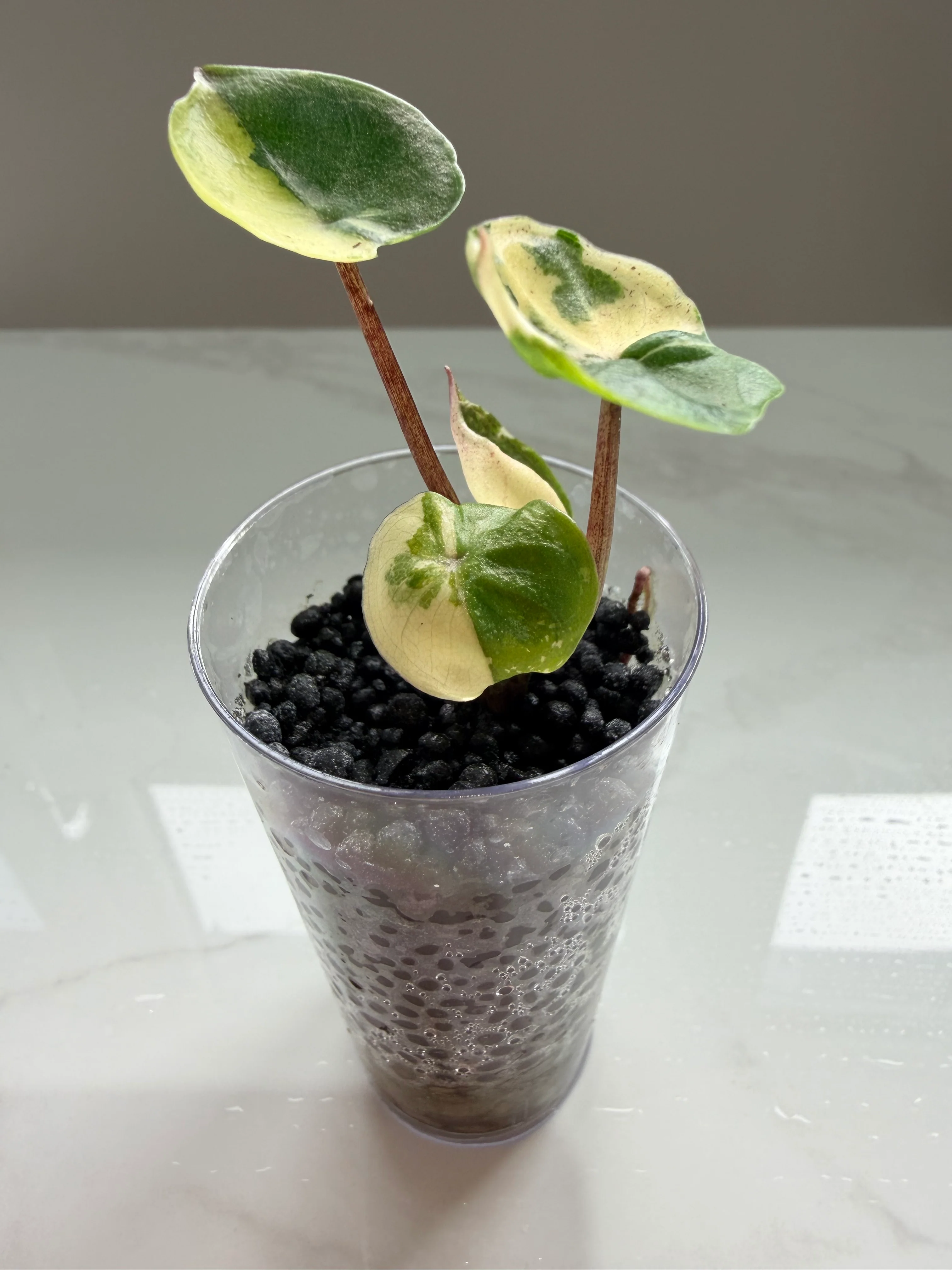 This rare and striking variety captivates dedicated enthusiasts with its unique marbling patterns that make every specimen truly one of a kind. The combination of deep green base coloration with soft pink and creamy white variegation creates a bold yet elegant aesthetic that transforms the beloved Yucatan Princess into an extraordinary collector's piece that brings sophisticated color harmony to any collection.